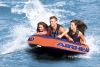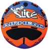 Super Slice, Airhead's high performance 3 rider low profile deck tube, will take your breath away! It's got an oversized topside neoprene body panel and 6 deluxe handles with neoprene knuckle guards, an Airhead exclusive. The 30-gauge virgin PVC bladder is fully encased by a rugged double-stitched nylon cover. Super Slice is equipped with a heavy duty Kwik-Connect and Multi-Valve for the ultimate in convenience. It's tapered in back to only 6", for easy boarding from the water. 70" diameter.