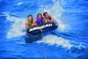 Gotta love AIRHEAD SUPER SLICE's Cool Camo graphics! It's one of top selling 3 rider towables of all time for good reason, it's simply a better deck tube. We invented the tapered gusset design in 2000; thicker in front, thinner in back. The tapered gusset provides better towing characteristics, a more comfortable riding position and easy mounting from the water. SUPER SLICE's nylon cover is manufactured from 840 denier nylon, giving it twice the tear strength of many of our competitors' deck tube covers. Peak performance is guaranteed with SUPER SLICE's topside neoprene panel, 6 nylon-wrapped handles and neoprene knuckle guards. The durable 70" (deflated) 30 gauge virgin PVC bladder is fully encased by a double-stitched nylon cover with a reinforced internal tow harness. SUPER SLICE is equipped with a super convenient Kwik Connect for easy hook ups and a patented Speed Safety Valve for fast inflating and deflating. Designed for 1 to 3 riders.