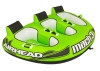 MACH 3 is our budget minded 3 rider cockpit towable. We recommend cockpit tubes for timid and young riders, since they feel very secure inside. MACH 3 also has a wild side, making teens and adults happy too. The inflated floors provide a comfortable seat. Six deluxe handles with neoprene knuckle guards provide a secure and comfortable grip. The heavy gauge PVC bladder and durable double-stitched nylon cover ensure years of service. Equipped with a patented Speed Safety Valve for easy inflating and deflating. 107 x 75 in.