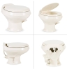 311 Short Gravity flush ceramic round Toilet with wood slow-close seat, foot pedal operation. The Dometic 311 Ceramic Low Profile Toilet is the best of all worlds. A value-priced toilet, it features revolutionary PowerFlush technology and a full-size ceramic bowl to deliver the comfort and beauty of a residential toilet. Motorhome builders love this Dometic toilet for the industry-best quick, two-bolt installation. Dealers love offering a ceramic toilet at a price previously seen only for cheaper, flimsier plastic models. You'll love everything about this lightweight toilet. Best in class for gravity flush toilets.Dimensions product depth 19 " Dimensions product height 14.25 " Dimensions product width 14.875 "