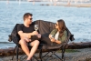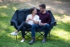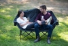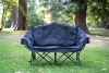 It's a double Lazy Bear Chair! Get ready to get close and personal sharing this 2 seater! Equipped with two stem glass holders on either side. One size fits all, rated at 500 lbs. Double 600 D polyester fabric. Sturdy 3/4" black tube frame. Stabilizer feet. Padded back and arm rests. 2 stem glass and beverage holders. Carry bag included. 38.5"H x 59" x 24"D. Seat height: 16". Weighs 22 lbs. Carry bag not covered under warranty.