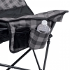 This chair has supreme comfort and ample space to kick back and relax. This fully cushioned seat includes a convenient insulated drink holder. Rated for 350lbs. Durable ribbed 600D polyester. Sturdy 3/4" black tube frame. Stabilizer feet. Padded back & arm rests. Insulated beverage holder and phone pocket. Carry bag not covered under warranty.