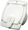 No metal parts that will rust or corrode. For use with a 30 Amp cord only. Cutout Dim: 2-27/32". Outside Dim: 4-5/16" h x 3-7/8" w. Collar Depth: 1-3/4".