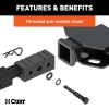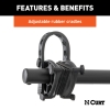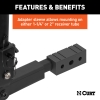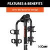 Adapter sleeve allows mounting on either 1-1/4" or 2" receiver tube. Securely holds up to two bikes with a max weight capacity of 90 lbs. Adjustable rubber cradles will not scratch bike frames.