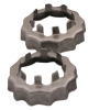 Axle nut retainer. This is the cookie cutter style axle spindle nut retainer. Use this retainer to secure D-Shaped axle spindles with a cotter pin hole. Saddles over 13/16" standard spindle nut. Dimension .845" ID, 1.14" L.